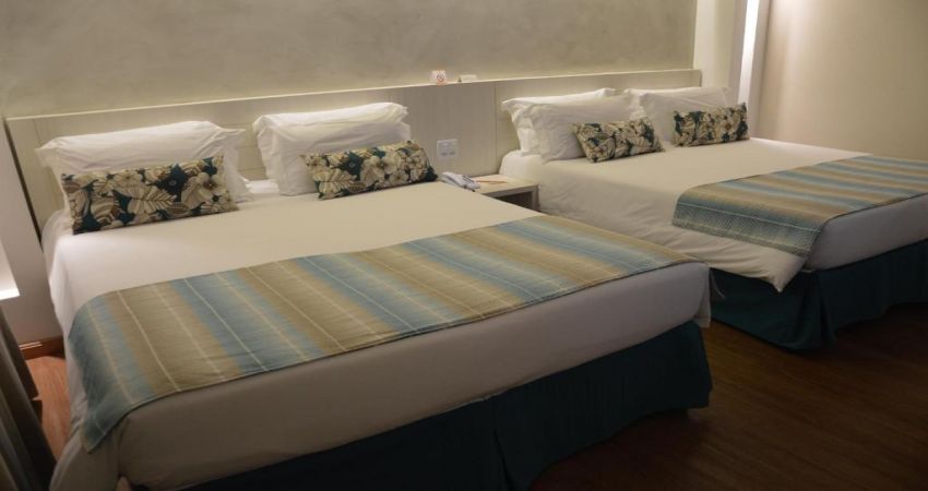 40 unidades localizadas no 12º e 13º andares, com uma cama de casal king size medindo 1,80 m X 2,00 m mais duas camas de solteiro sobressalentes medindo 0,90cm X 2,00m cada.