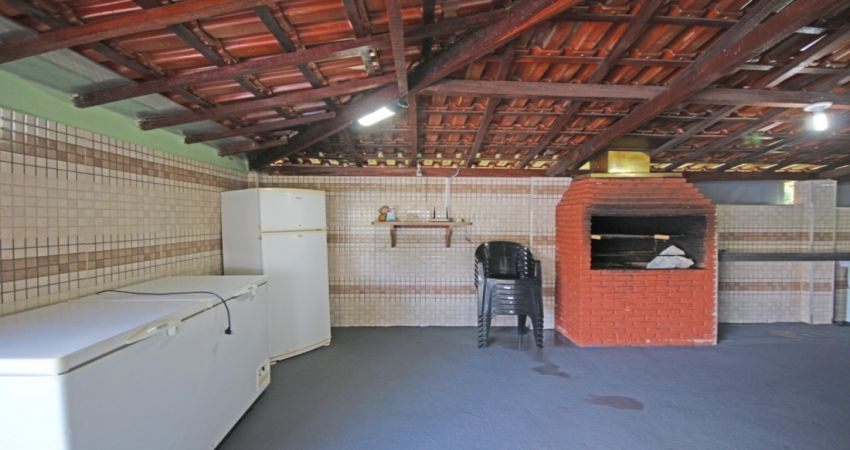 Exterior: jardim / gramado / churrasqueira